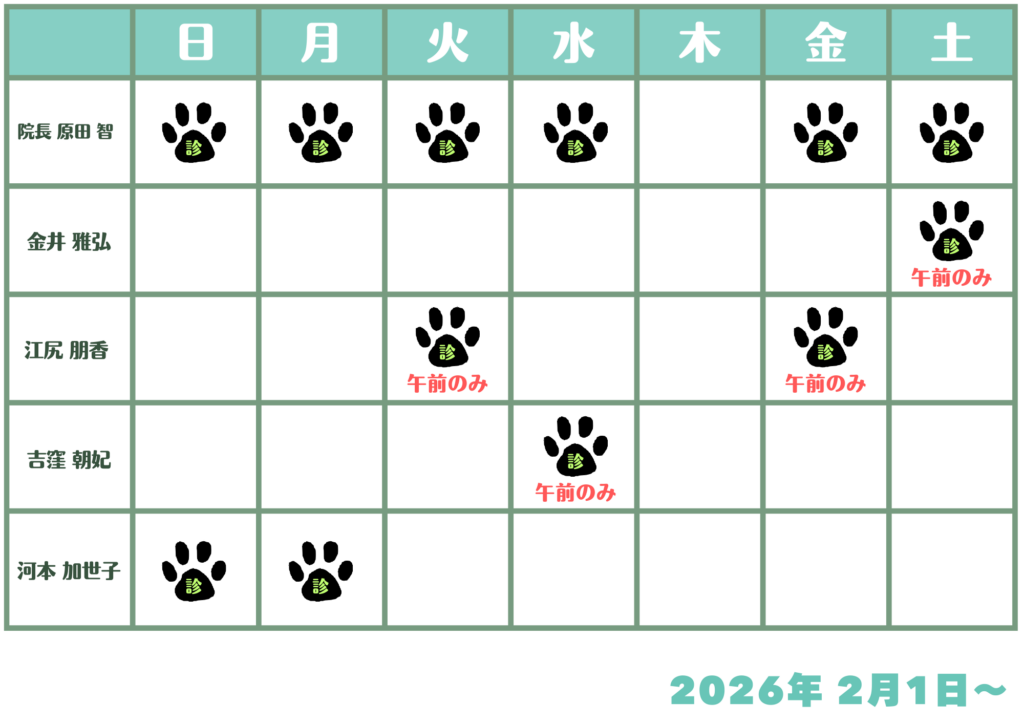 毎週木曜日は「訪問診療」「歯科処置/手術」のみとなります。